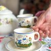 Une tasse à café trop mignonne ! Cette tasse vintage en faïence est parfaite pour les amateurs de café et amènera une jolie touche de poésie avec ses dessins d’oies au milieu des fleurs.