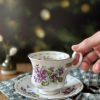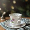 On adore cette collection vintage en porcelaine anglaise Royal Albert, datée 1970. Cette tasse ancienne est si belle avec ses jolis dessins de violettes aux traits et couleurs si délicats, on l’adore !