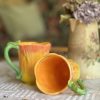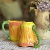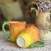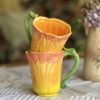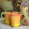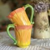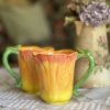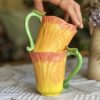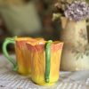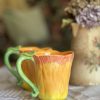 Une tasse unique pour les amoureux de barbotine et de fleurs ! On adore sa jolie forme fleur et ses belles couleurs vives. Cette tasse vintage a une très belle anse faisant penser à une tige et sa feuille qui s’enroule jusqu’au buvant. C’est la tasse parfaite pour un bel été coloré !