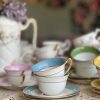 Une magnifique tasse à café en porcelaine ancienne ! On adore la finesse de sa porcelaine venant d’une manufacture ancienne du Berry, Foëcy Lourioux. Chaque tasse a une couleur et une fleur différente dessinée dans le fond (roses, pensées, jonquille, violettes…). Les liserés dorés lui ajoutent beaucoup d’élégance et de finesse. Une très belle tasse pour votre pause café fleurie !