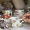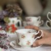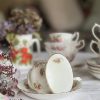 Une magnifique tasse à thé en porcelaine anglaise de Royal Albert ! On adore ce modèle vintage Forget Me Not Rose pour la poésie de ses motifs mêlant des roses et des myosotis.