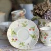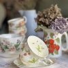 Magnifique tasse anglaise aux jolis dessins de fraises et leurs feuillages ! Son motif est très délicat, et sa porcelaine a une forme très élégante. La tasse parfaite pour une pause thé/café chic et cosy ! On adore la finesse de sa porcelaine et ses jolis liserés dorés.