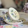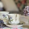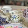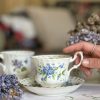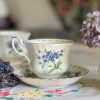 On adore cette collection vintage en porcelaine anglaise Royal Albert, datée 1970. Cette tasse ancienne est si belle avec ses jolis dessins de myosotis, appelés Forget-Me-Not en anglais, aux formes et couleurs délicates. On l’adore !