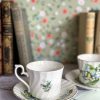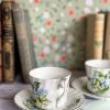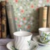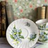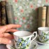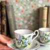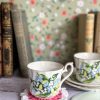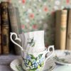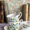 Magnifique tasse en porcelaine ! Ses motifs mêlent myosotis et muguet pour une pause thé ou café toute en poésie.