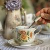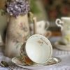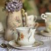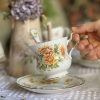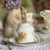 Très belle tasse Novembre en porcelaine anglaise ! On adore ses magnifiques dessins de chrysanthèmes, aux tons jaunes orangés, rappelant l’automne. Cette tasse a une très belle sous-tasse et petite cuillère assorties.