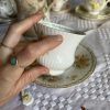 Cette tasse vintage est en bel état avec quelques marques du temps : deux petits éclats au buvant sur le côté et au dos. Ses dorures sont en très bel état.
