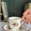 Coup de cœur pour cette superbe tasse à thé en porcelaine anglaise ! On adore la finesse de sa porcelaine réhaussée de dorures et d’éléments en relief. Ses dessins mêlant des bouquets de fleurs colorées lui donnent tout son charme, cette tasse deviendra votre chouchou pour le tea time !