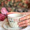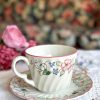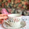 Gros coup de cœur pour cette superbe tasse vintage anglaise ! On adore sa jolie porcelaine torse, ses beaux motifs Spring Fields mêlant feuillages et fleurs, et ses liserés roses qui viennent lui ajouter beaucoup de charme.
