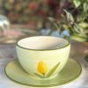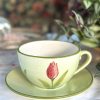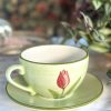 Magnifique tasse à petit-déjeuner ! On adore ses couleurs printanières avec trois belles tulipes peintes sur un fond vert pastel. Avec sa sous-tasse assortie, c’est la tasse parfaite pour des petit-déjeuners remplis de douceur.