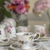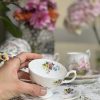 Une belle tasse fleurie en porcelaine anglaise ! On adore son motif de petits bouquets, mêlant fleurs roses, jaunes et bleues. Un très beau mélange coloré pour rendre votre pause thé ou café poétique.