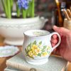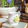 Coup de coeur pour cette tasse anglaise ! On adore sa forme généreuse et ses superbes dessins de primevères jaunes. Elle est toute en élégance avec son liseré doré au buvant, sa jolie anse, et sa porcelaine fine anglaise.