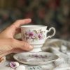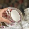 Superbe tasse vintage en porcelaine anglaise ! On adore la finesse et l’élégance de cette tasse avec son joli pied travaillé. aux jolis dessins de roses. Sa porcelaine fine est joliment décorée, une tasse qui vous fera passer un doux moment fleuri pendant votre pause thé ou café.