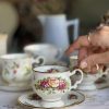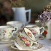 Une magnifique tasse en porcelaine anglaise. On l’adore ! On aime l’élégance de sa forme sur pied et ses magnifiques dorures.