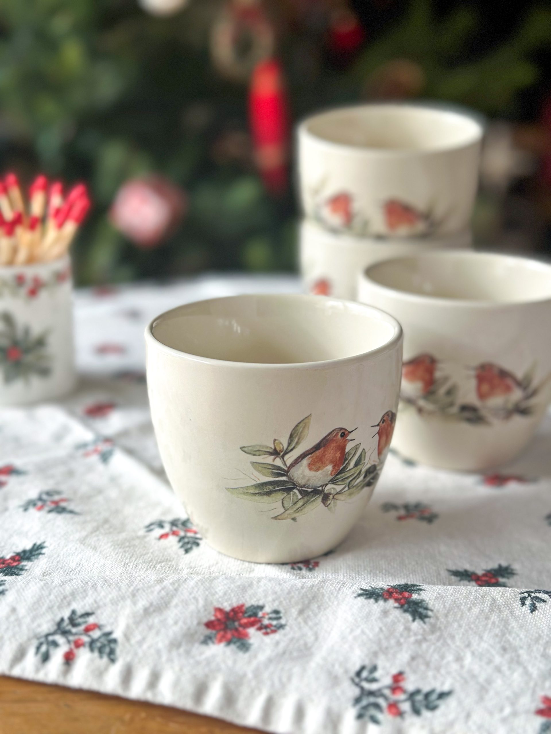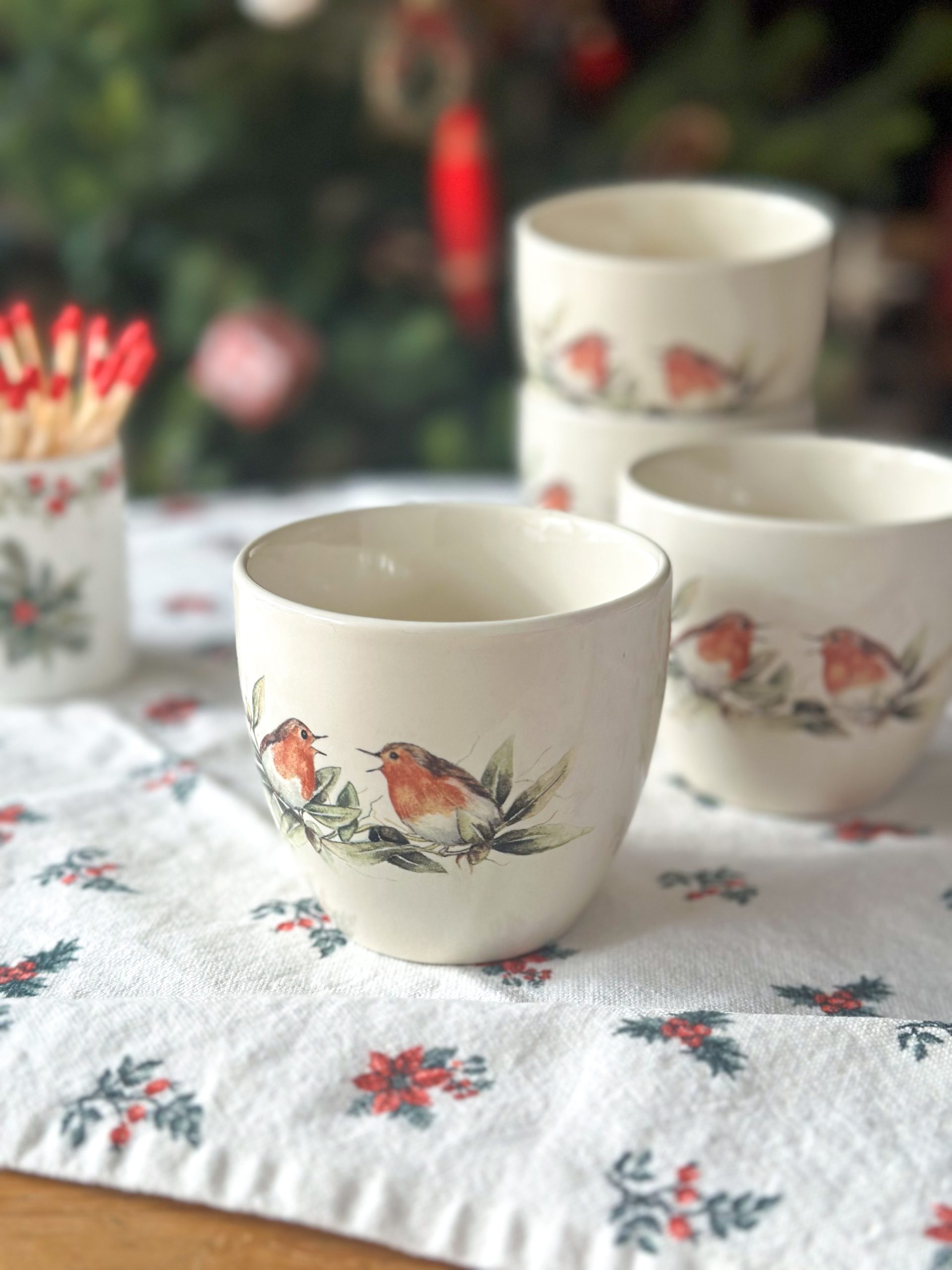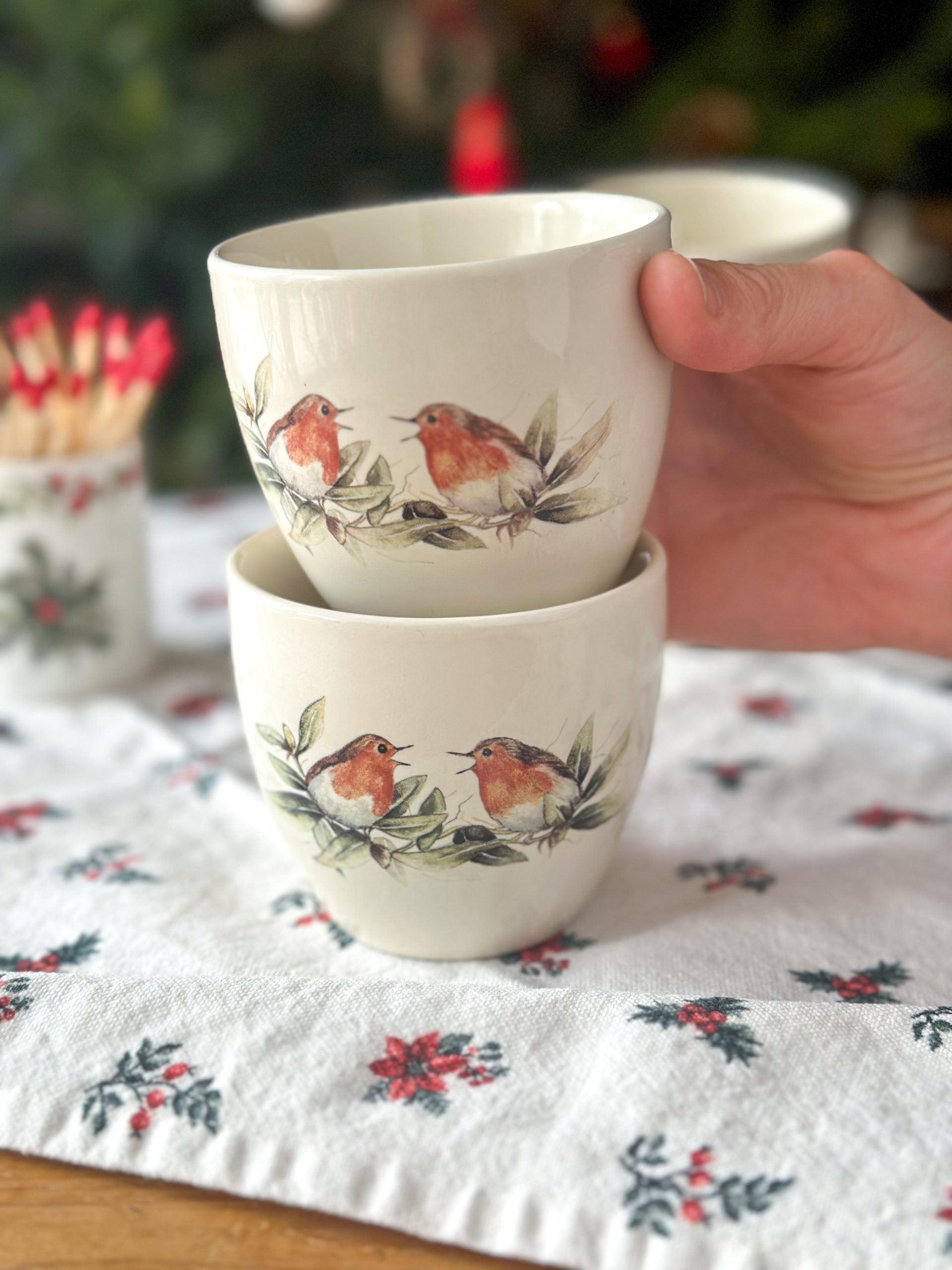 Coup de coeur pour cette tasse ! On adore ses jolis dessins de deux rouge-gorges sur leurs branches. Une tasse sans anse qui sera parfaite pour vos boissons d’Hiver.
