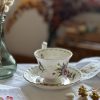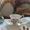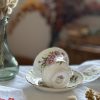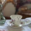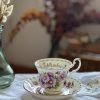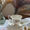 On adore cette collection vintage en porcelaine anglaise Royal Albert, datée 1970. Cette tasse ancienne est superbe avec ses jolis dessins d’asters (ou Marguerite de la Saint-Michel , Michaelmas Daisy en anglais). Avec ses couleurs délicates et ses dorures, on l’adore !
