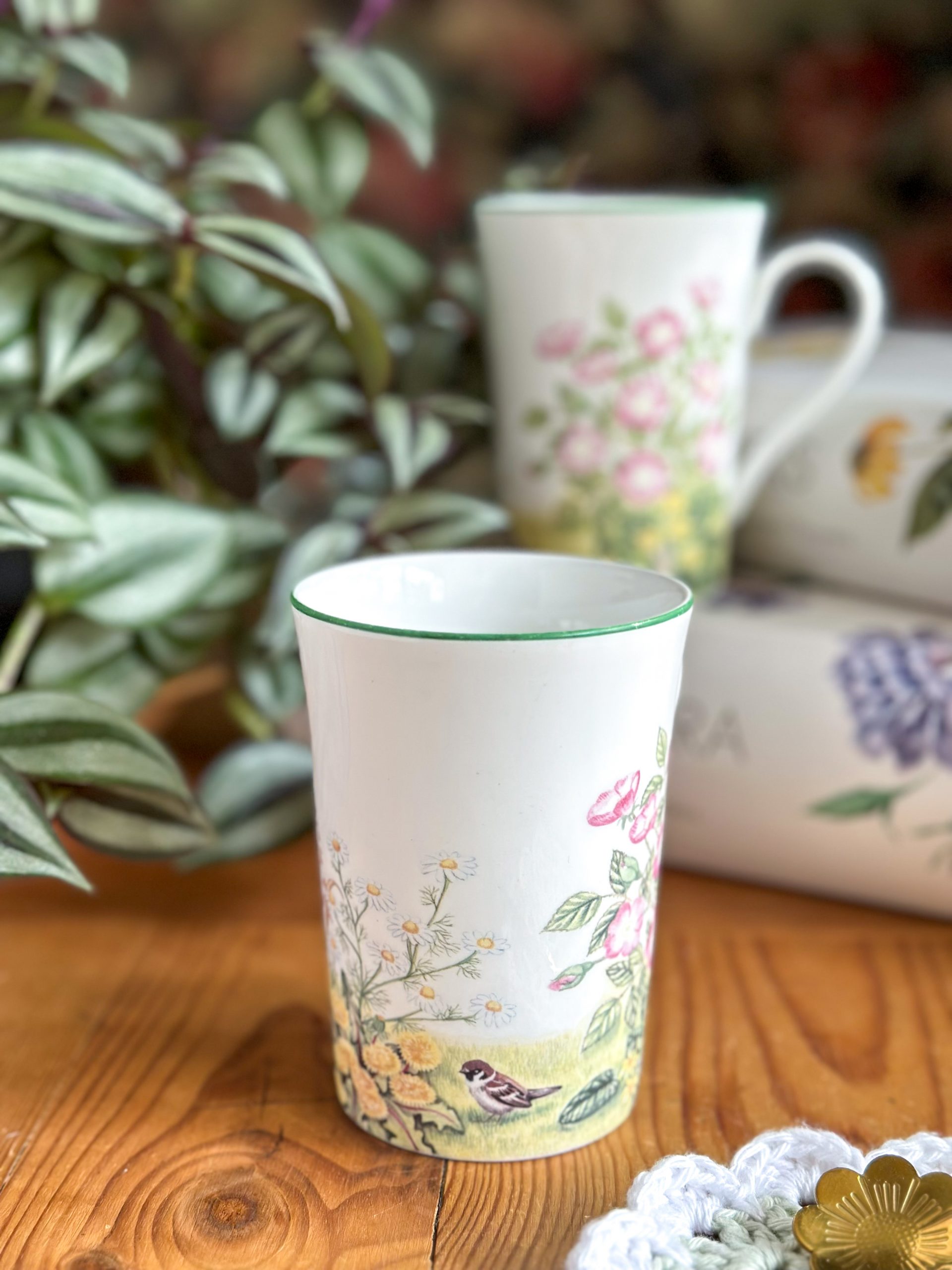 Un très beau mug en porcelaine anglaise pour vos pauses thé ou café ! On adore ses jolis dessins printaniers et champêtres, nous plongeant dans un jardin anglais mêlant fleurs de printemps, oiseaux et abeilles. Sa porcelaine fine est superbe.