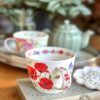 Coup de coeur pour cette tasse anglaise ! On adore sa superbe porcelaine anglaise de la manufacture Dunoon. Avec sa jolie forme évasée, cette tasse à thé a de superbes dessins de fleurs d’été : coquelicot, rose, lys, pois de senteur. Elle est toute en élégance avec son liseré fleuri à l’intérieur, sa jolie anse, et sa porcelaine fine.