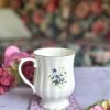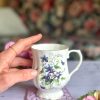 Une jolie tasse anglaise ! On adore sa jolie forme haute en porcelaine fine réhaussée de liserés dorés. Elle est décorée d’un joli bouquet mêlant violettes et muguet.