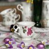 Très belle tasse Wild Rose en porcelaine anglaise ! Cette tasse Royal Ascot a un joli motif de roses rouges et blanches, réhaussée de liserés dorés en très bel état (estompés au buvant et sur la poignée). On adore sa porcelaine travaillée, très fine et élégante pour un joli moment thé ou café.