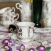 Cette tasse est en très bel état. Les liserés de la sous-tasse sont estompés.