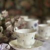 On adore son joli motif de petites fleurs bleues claires, pour une pause thé ou café tout en douceur. Les dorures sont en très bel état.