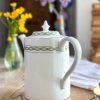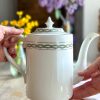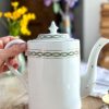 Magnifique théière anglaise ! On adore l’élégance de ce modèle « Seine », en porcelaine fine anglaise Bone China. Décorée de festons verts et liserés dorés, cette théière sera parfaite pour un teatime raffiné et tout en douceur.