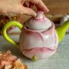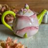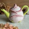 Une théière toute mignonne en forme de rose en bouton ! On adore ce style cottagecore et la douceur de sa couleur rose.