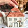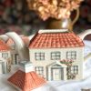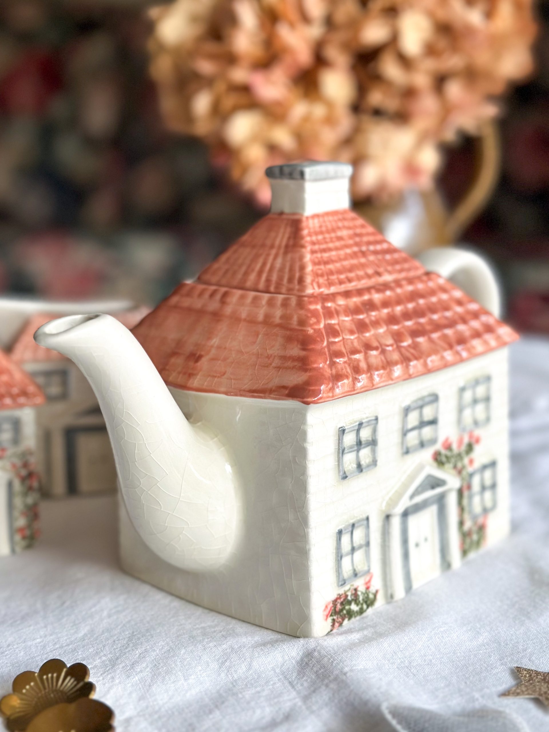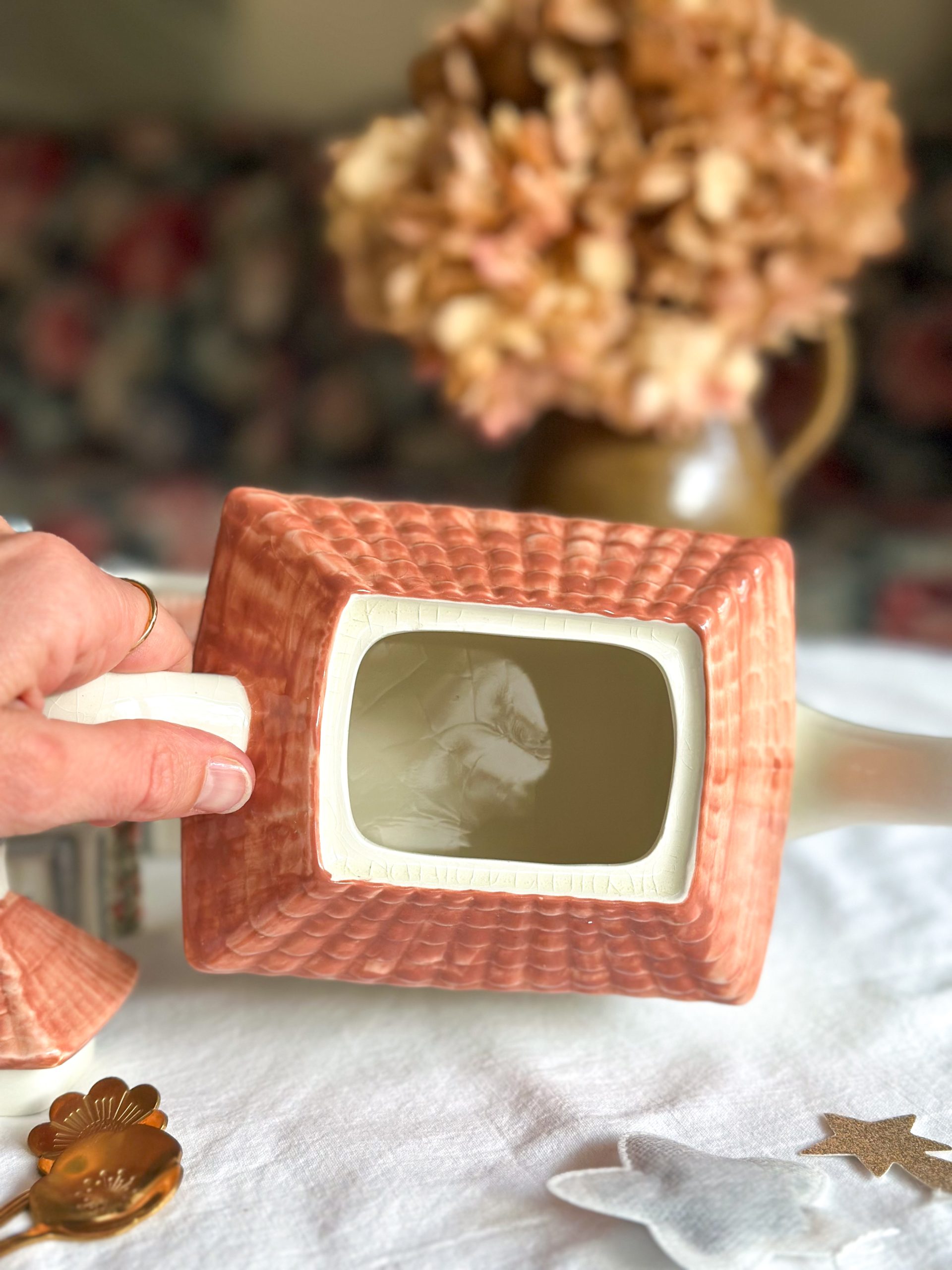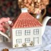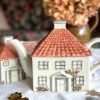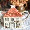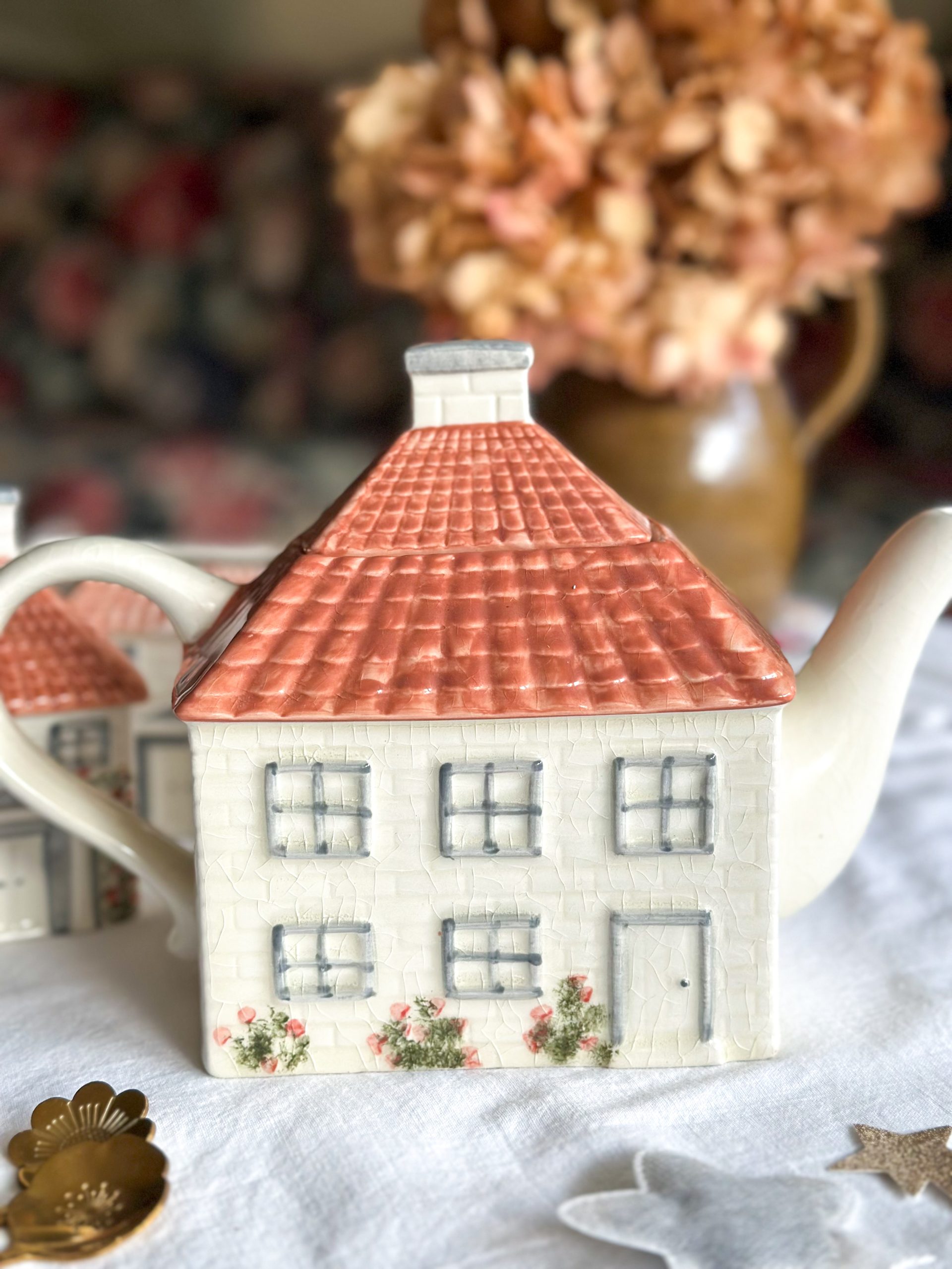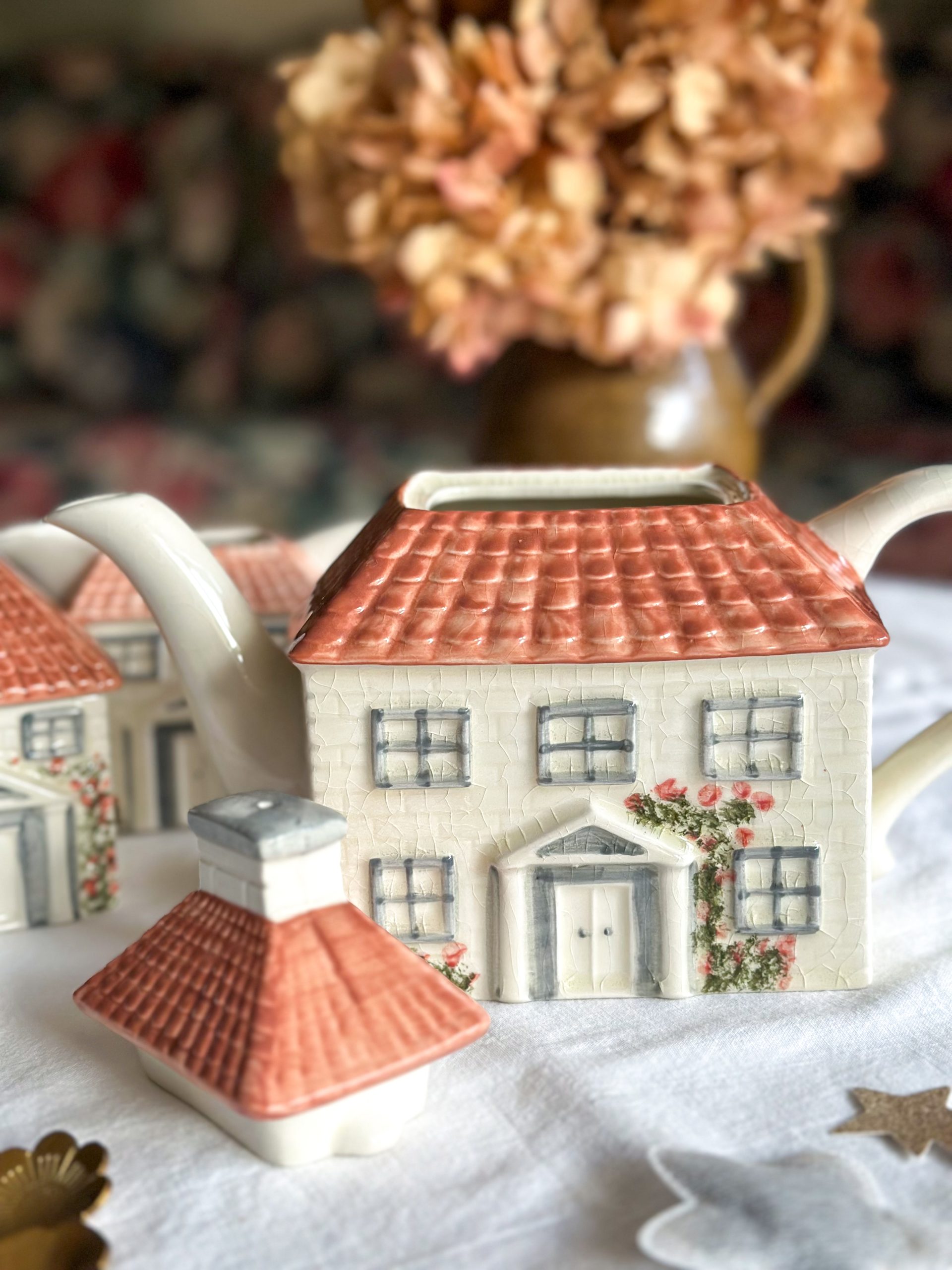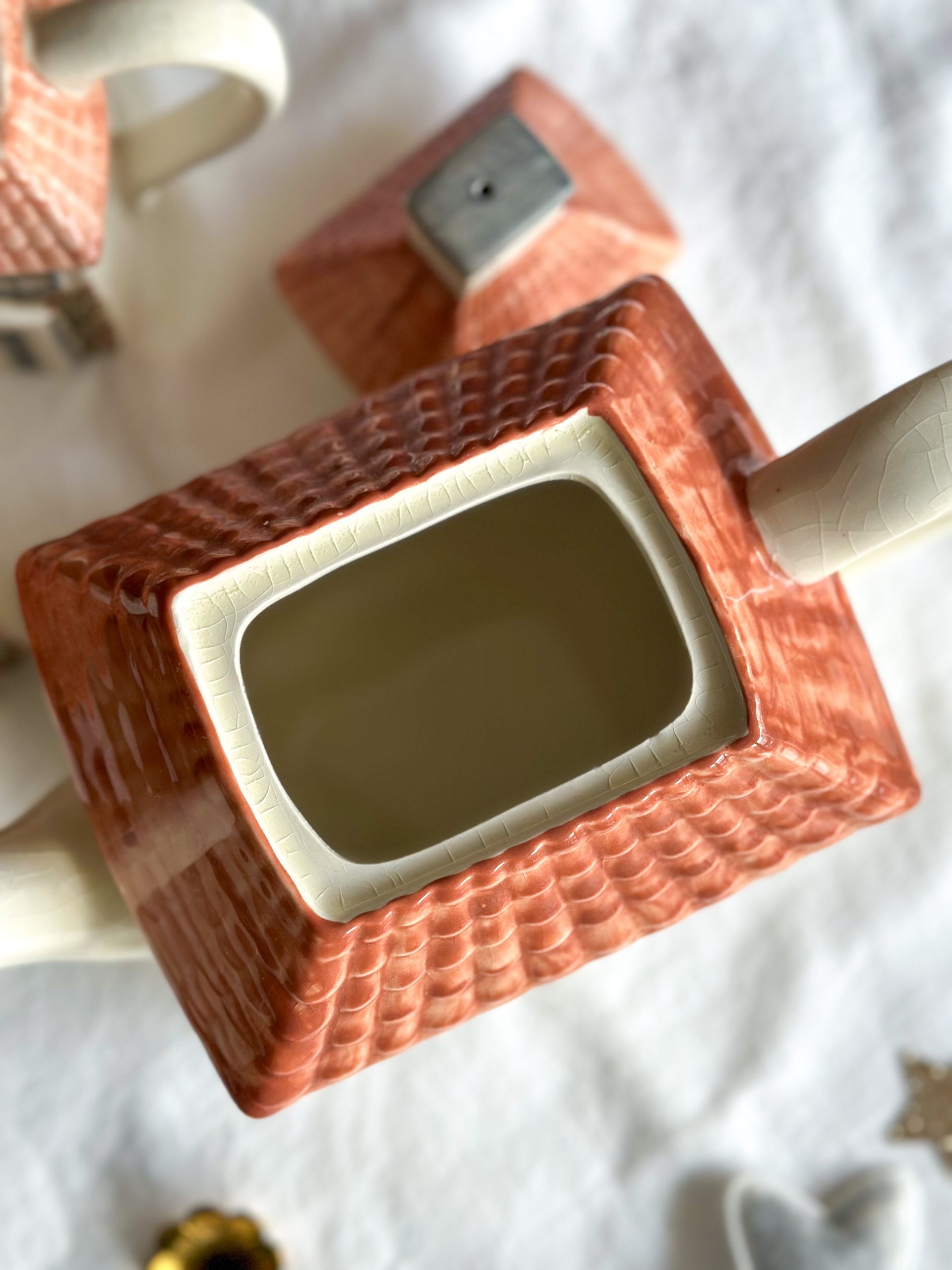 Coup de coeur pour cette théière ! Avec sa forme de joli cottage anglais, cette théière ravira les fans de teatime et de décoration cottagecore. Le toit se transforme en couvercle, le décor est différent des deux côtés de la théière : un petit cottage anglais avec de beaux parterres fleuris et un rosier grimpant à l’entrée. Une vraie invitation à rêver de campagne anglaise !