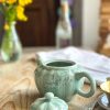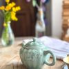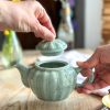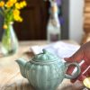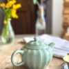 Superbe petite théière ! Pour une personne ou en décoration, cette petite théière en forme de citrouille est magnifique ! On adore sa jolie couleur céladon, ce vert si doux qui décorera parfaitement votre intérieur.