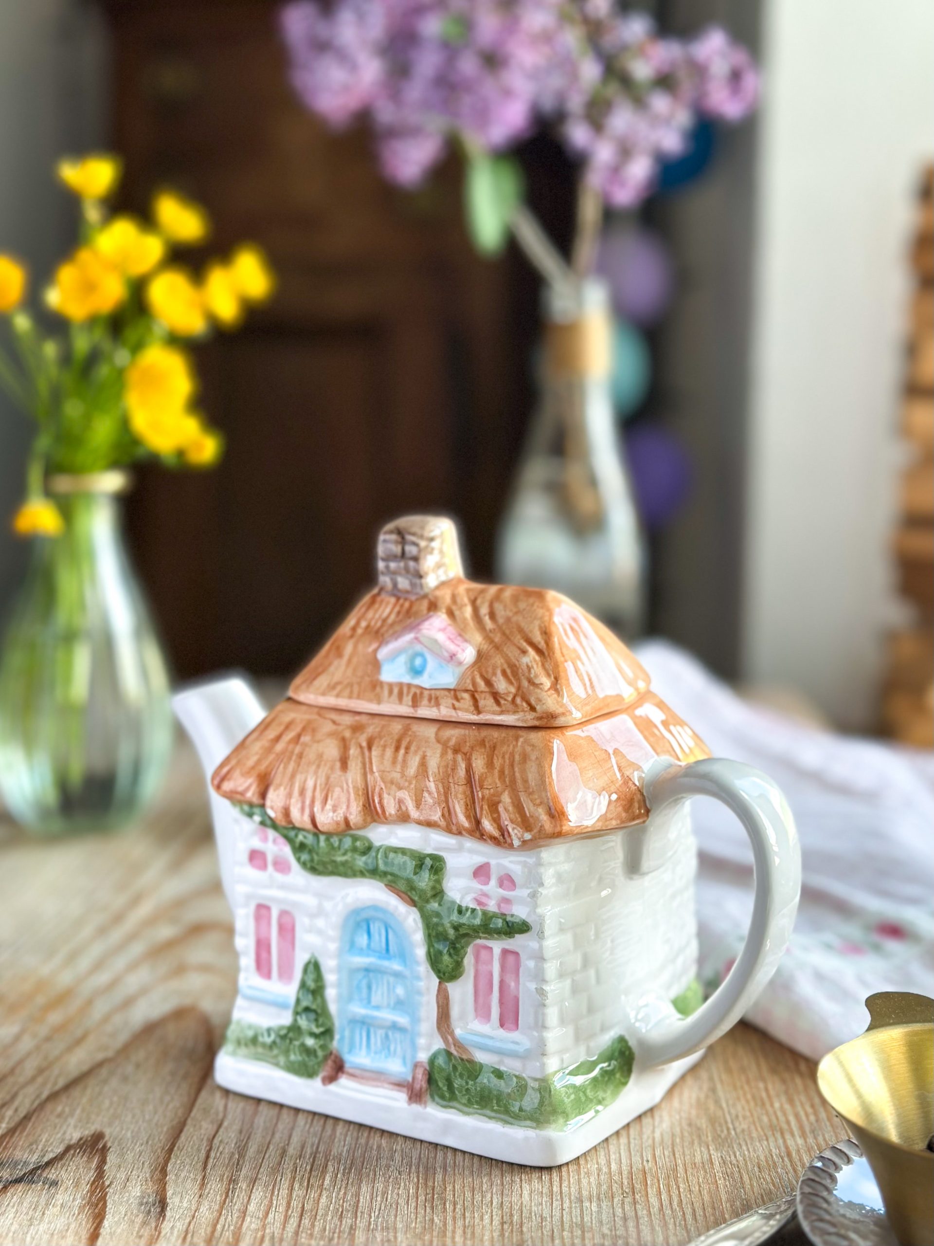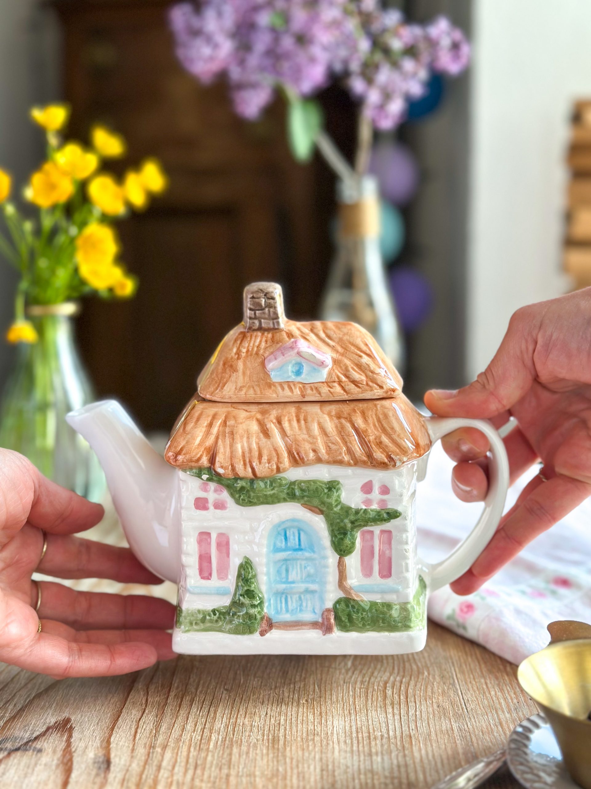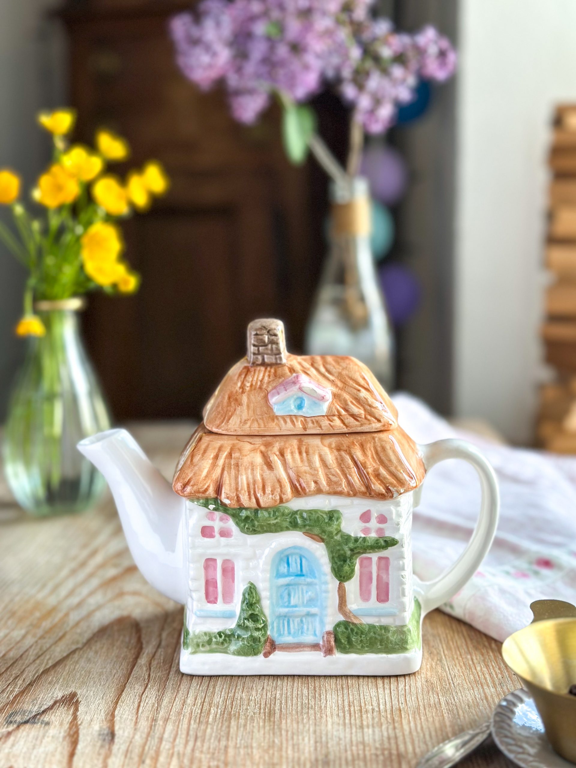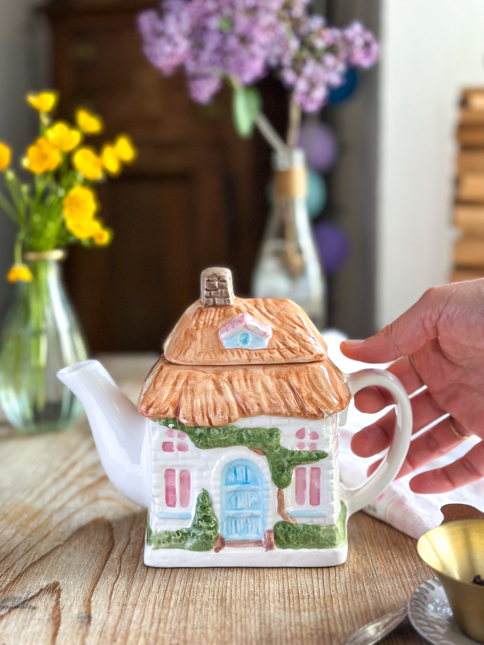Superbe théière ! Avec sa jolie forme de cottage anglais, cette théière ravira les fans de teatime et de décoration cottagecore. Une vraie invitation à rêver de campagne anglaise !