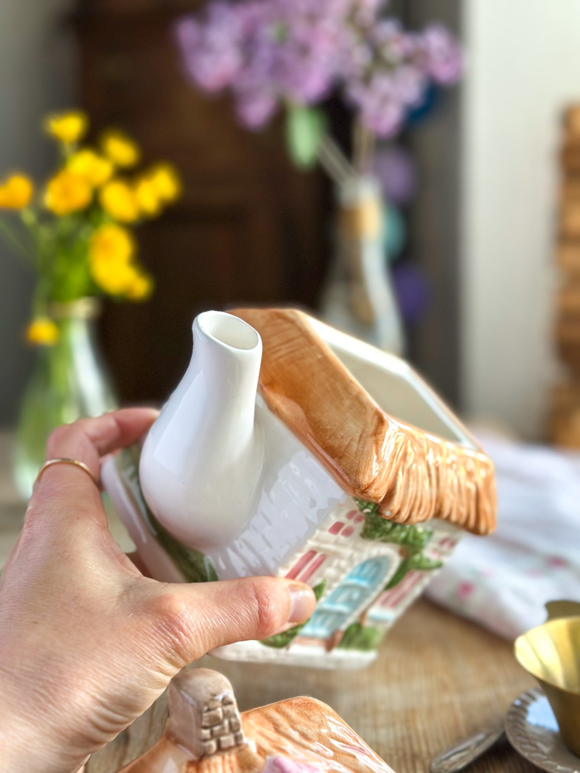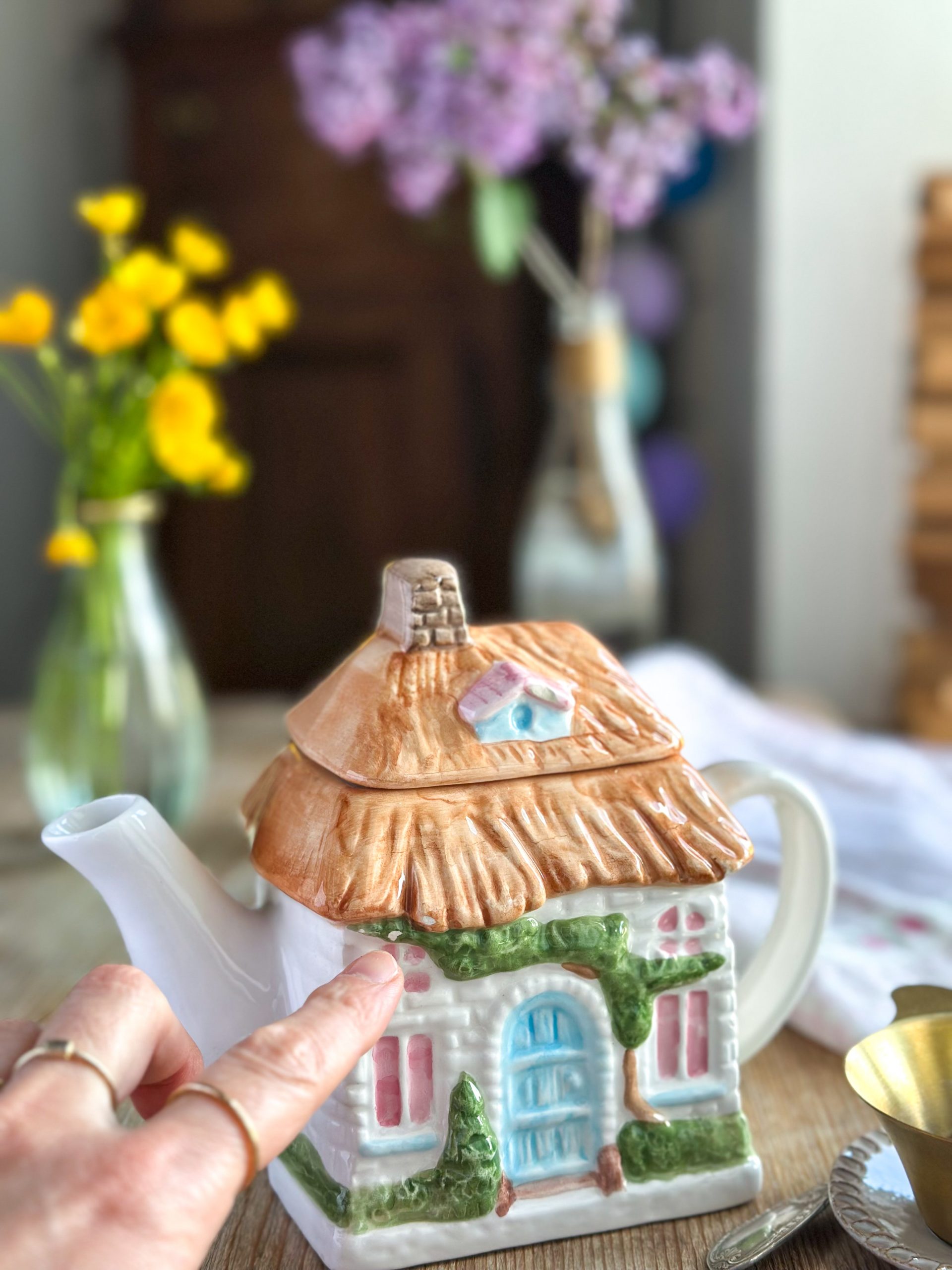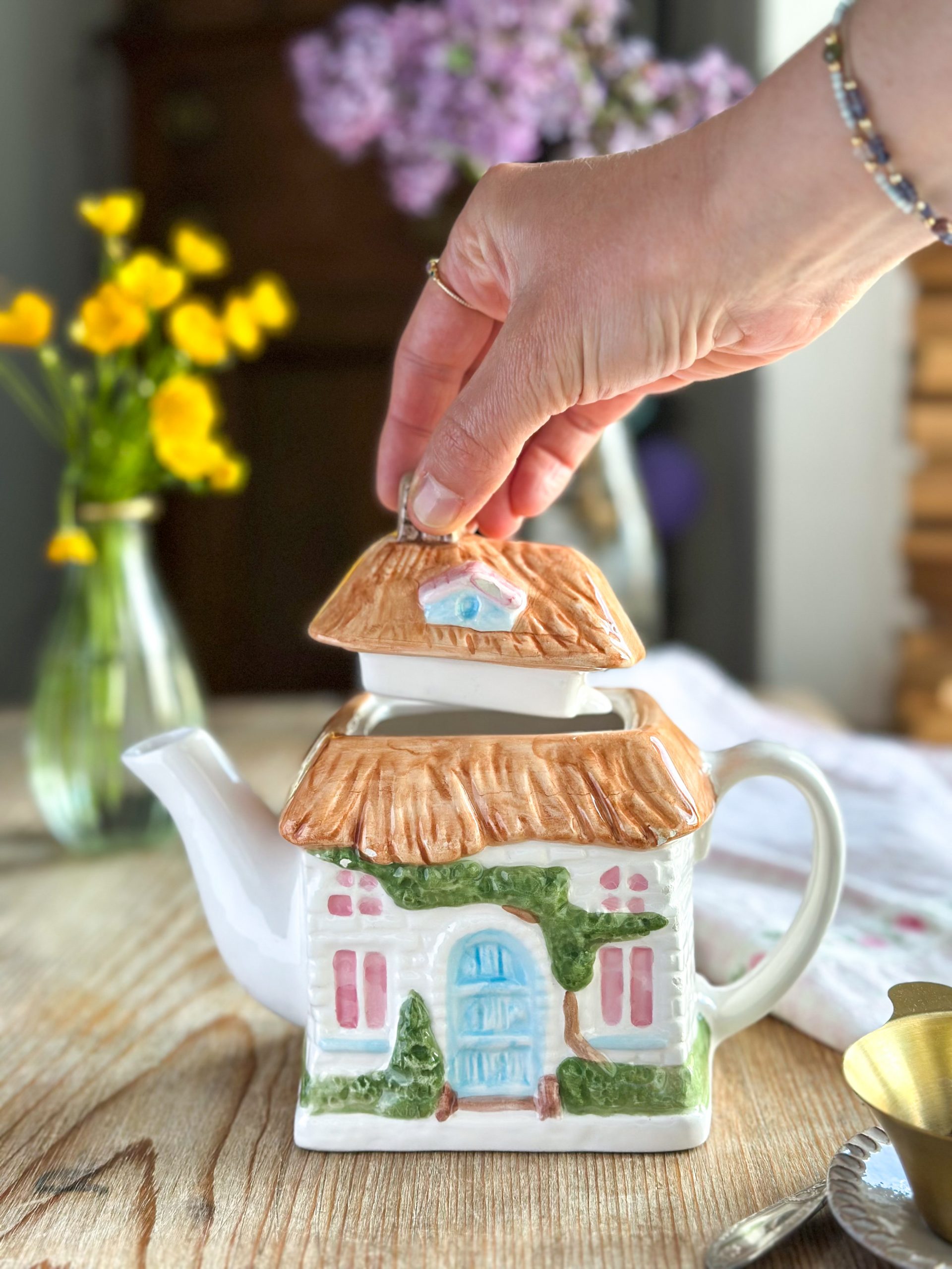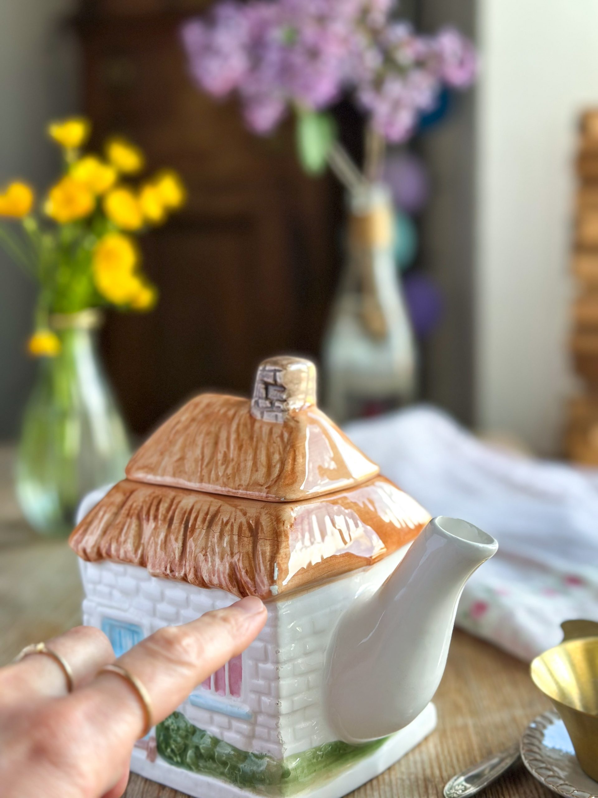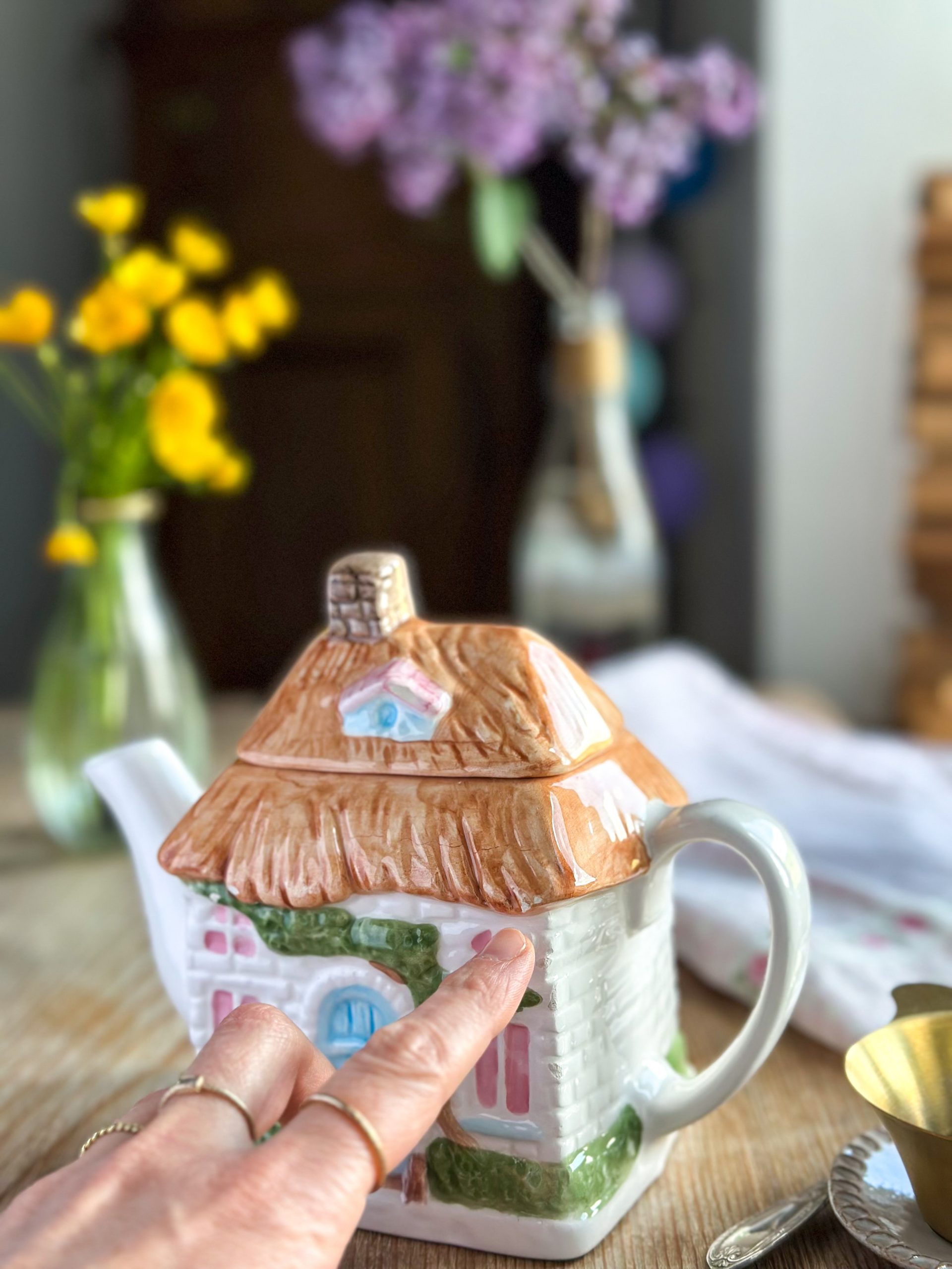 Superbe théière ! Avec sa jolie forme de cottage anglais, cette théière ravira les fans de teatime et de décoration cottagecore. Une vraie invitation à rêver de campagne anglaise !
