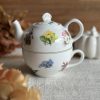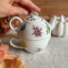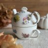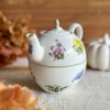 Une superbe théière solitaire en porcelaine fine anglaise ! On adore ses jolis dessins fleuris, mêlant myosotis, violettes, muguet, roses… Une petite théière toute en finesse et en poésie. Avec sa tasse imbriquée, elle sera parfaite pour vous faire passer un doux moment cosy avec votre thé ou tisane préférée !