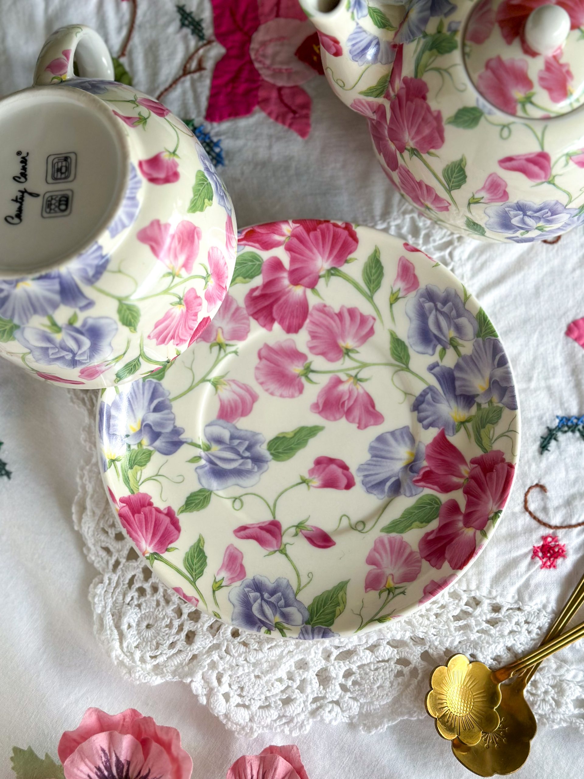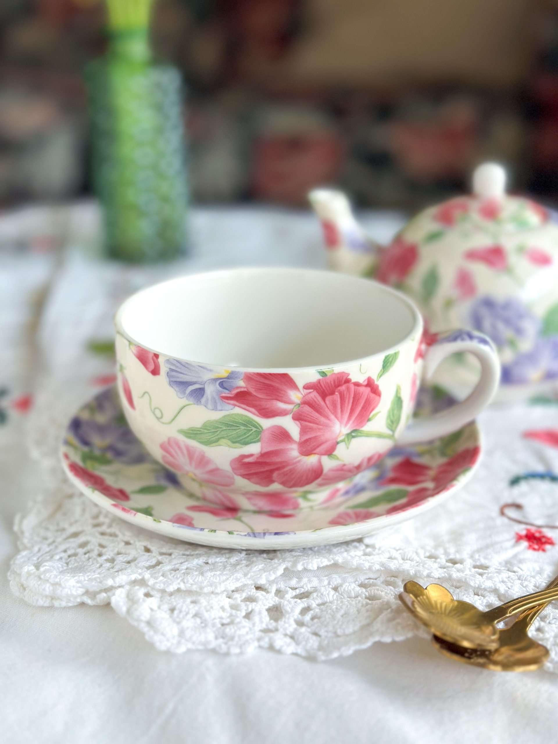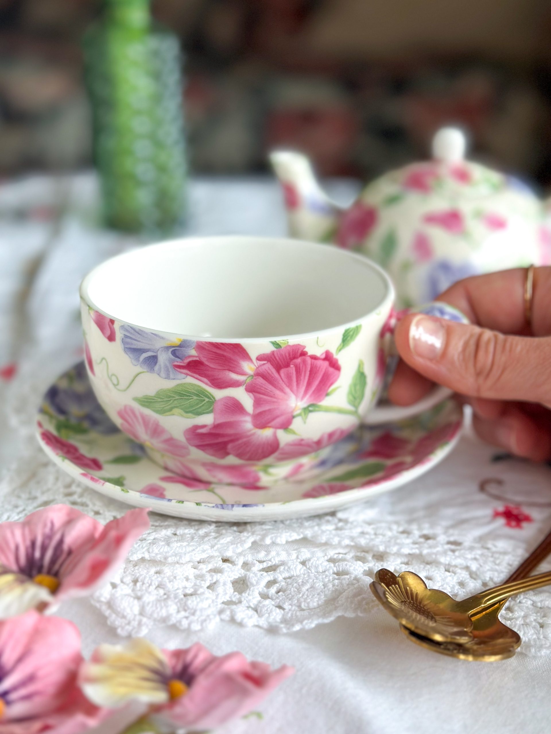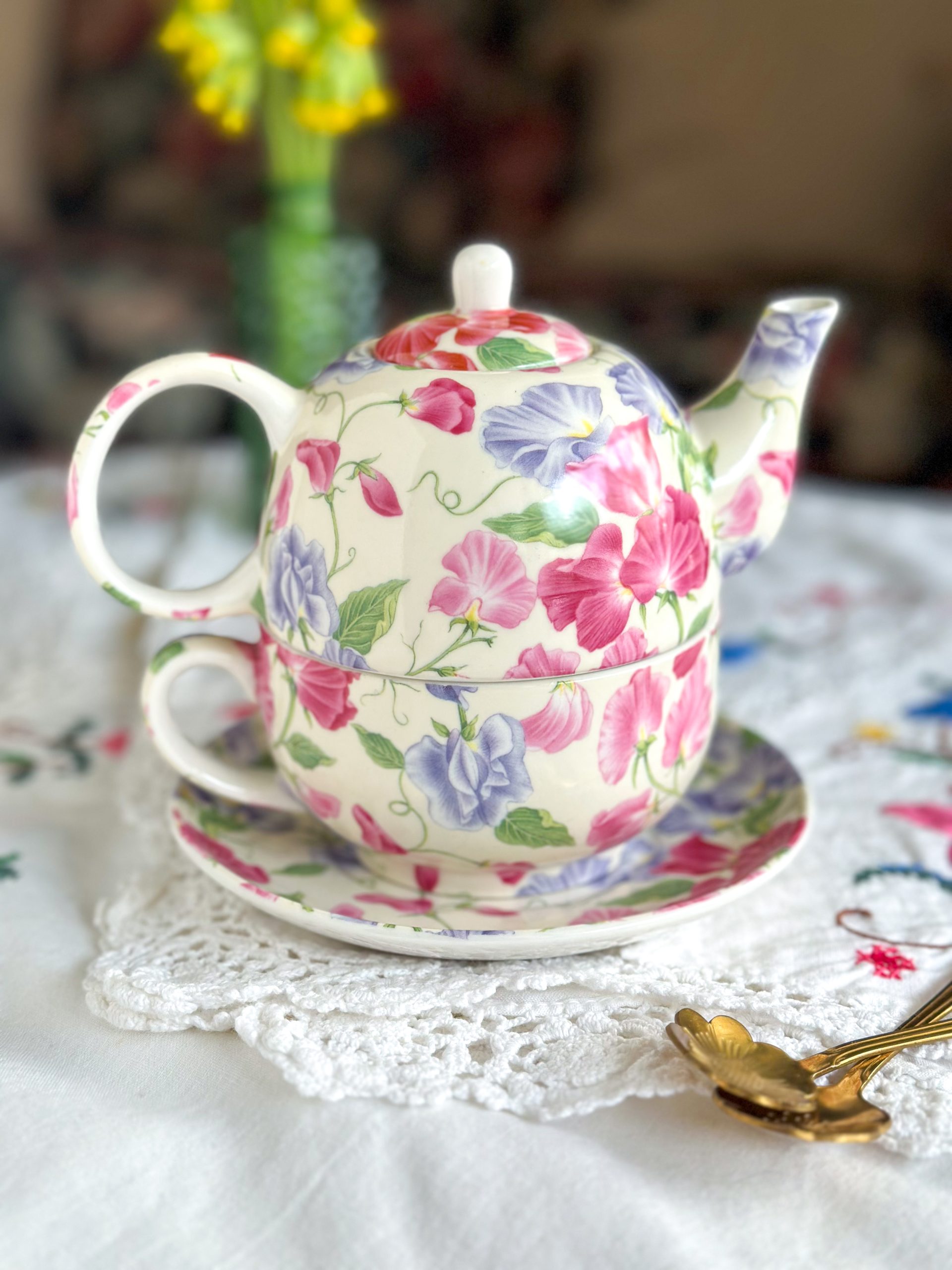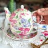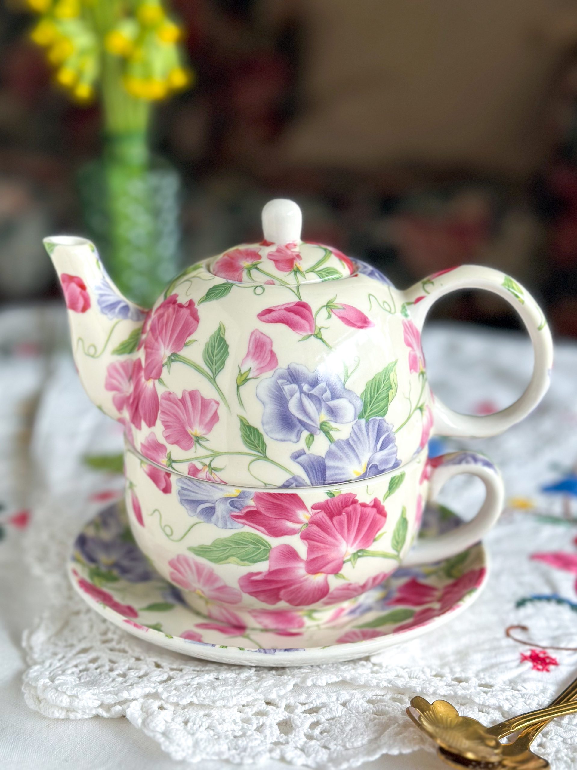 Une très belle théière solitaire en porcelaine ! On adore son superbe décor rempli de pois de senteurs colorés.