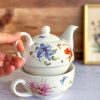 Une très belle théière solitaire en porcelaine ! On adore ses jolis dessins mêlant papillons et fleurs d’été. Avec sa tasse imbriquée, cette théière solitaire sera parfaite pour un doux moment cosy avec votre thé ou tisane préférée !