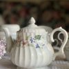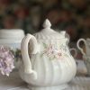 Magnifique théière Spring Fields ! On adore ses jolis dessins aux tons doux, mêlant fleurs et feuillages. Un vrai coup de cœur pour cette grande théière vintage de la manufacture Wood & Sons. Sa porcelaine torse et ses liserés roses lui donnent beaucoup de charme.