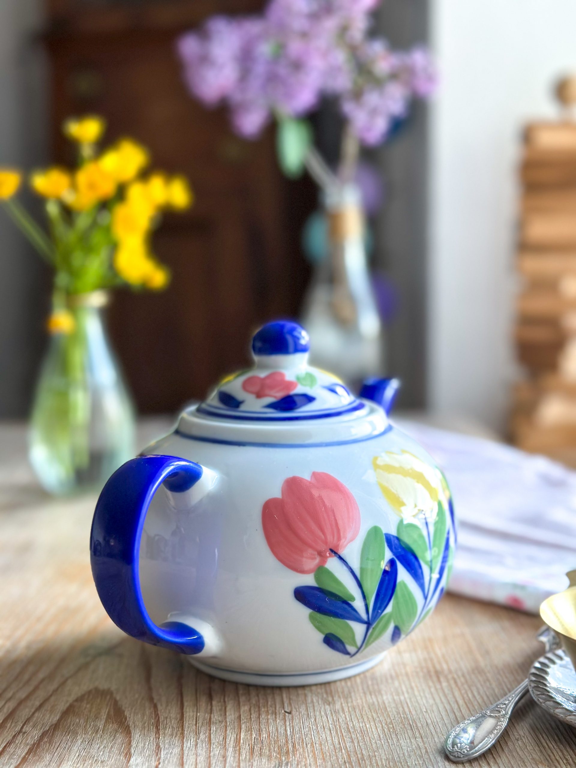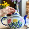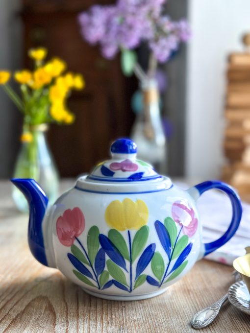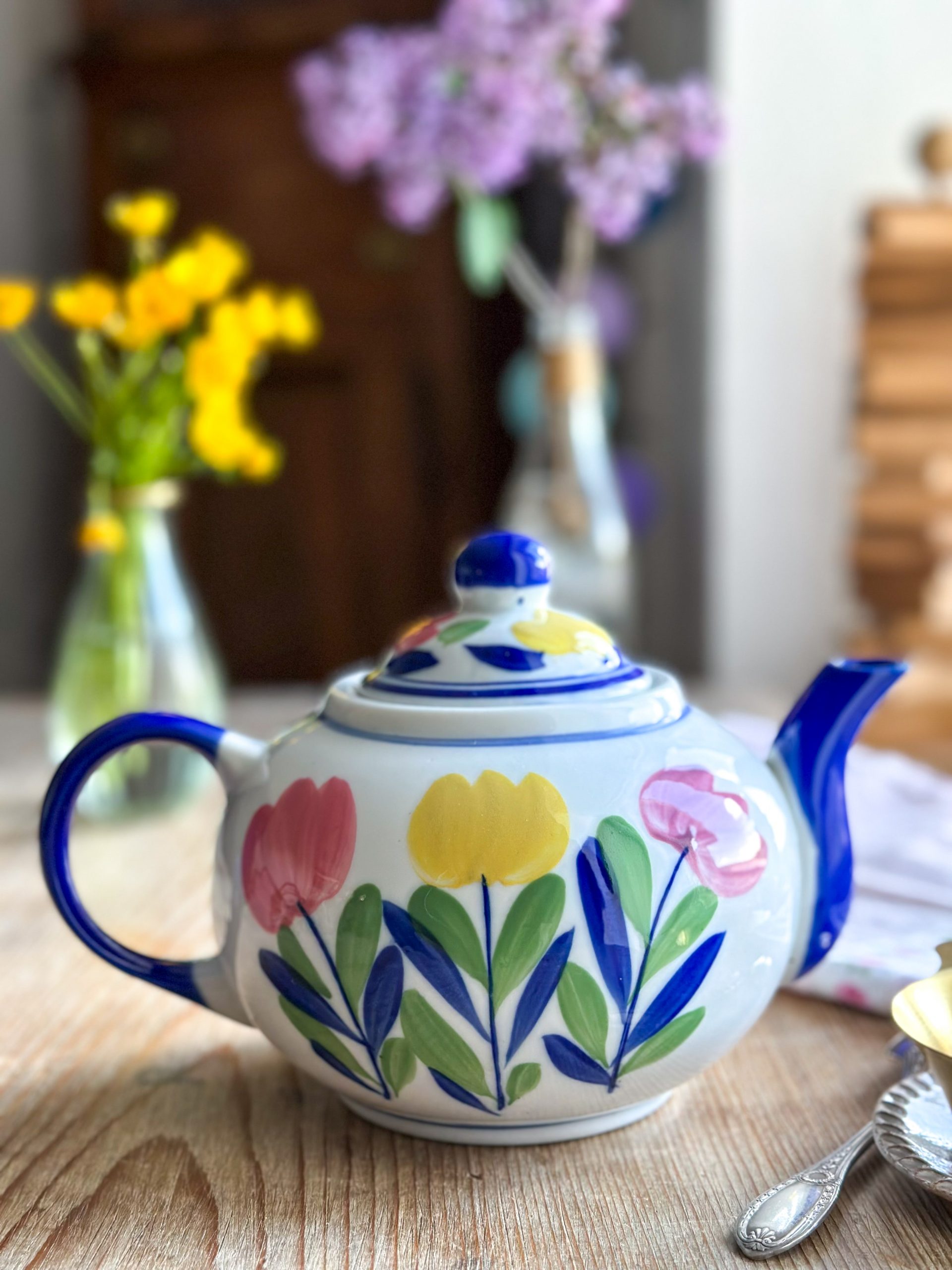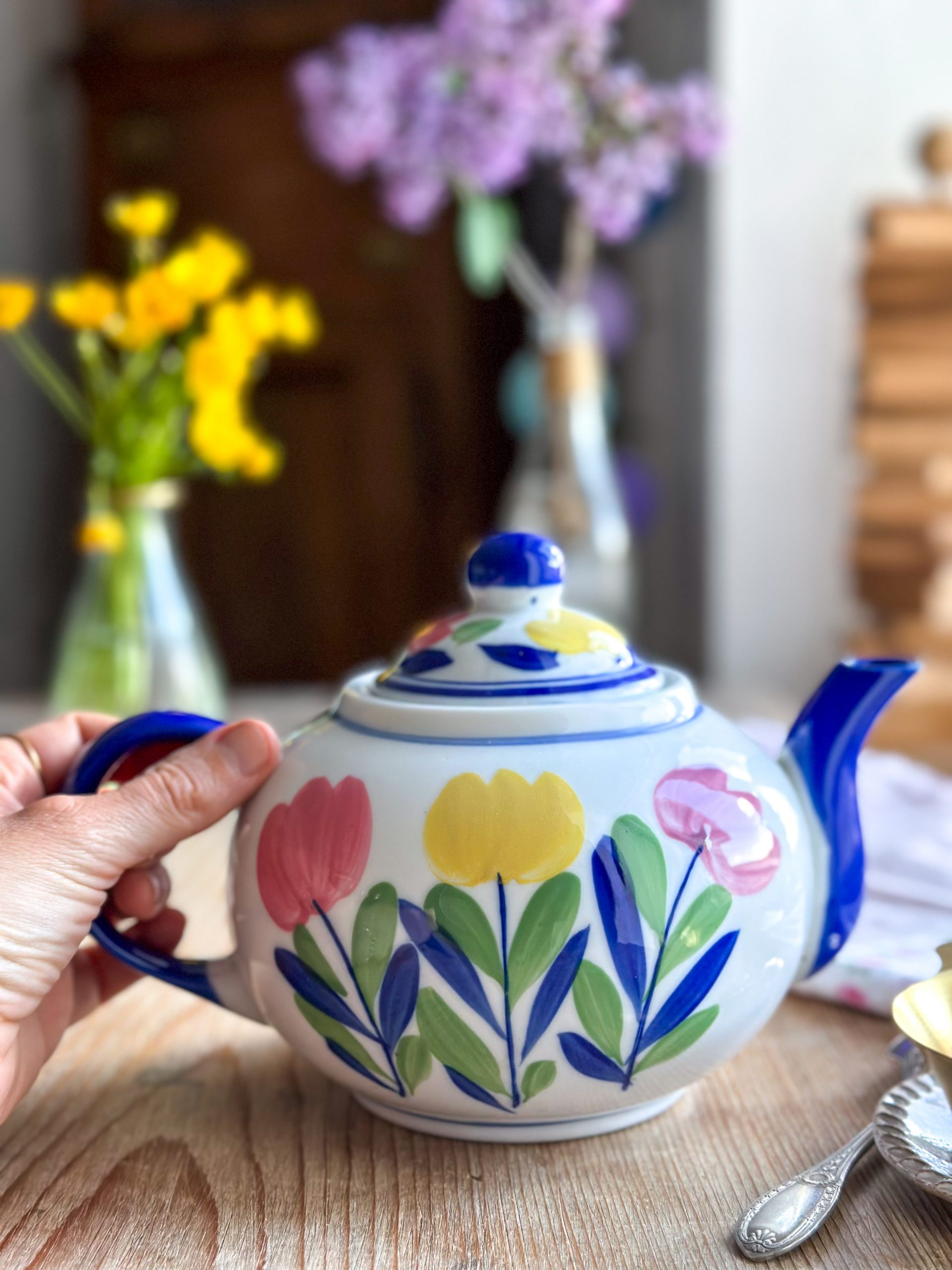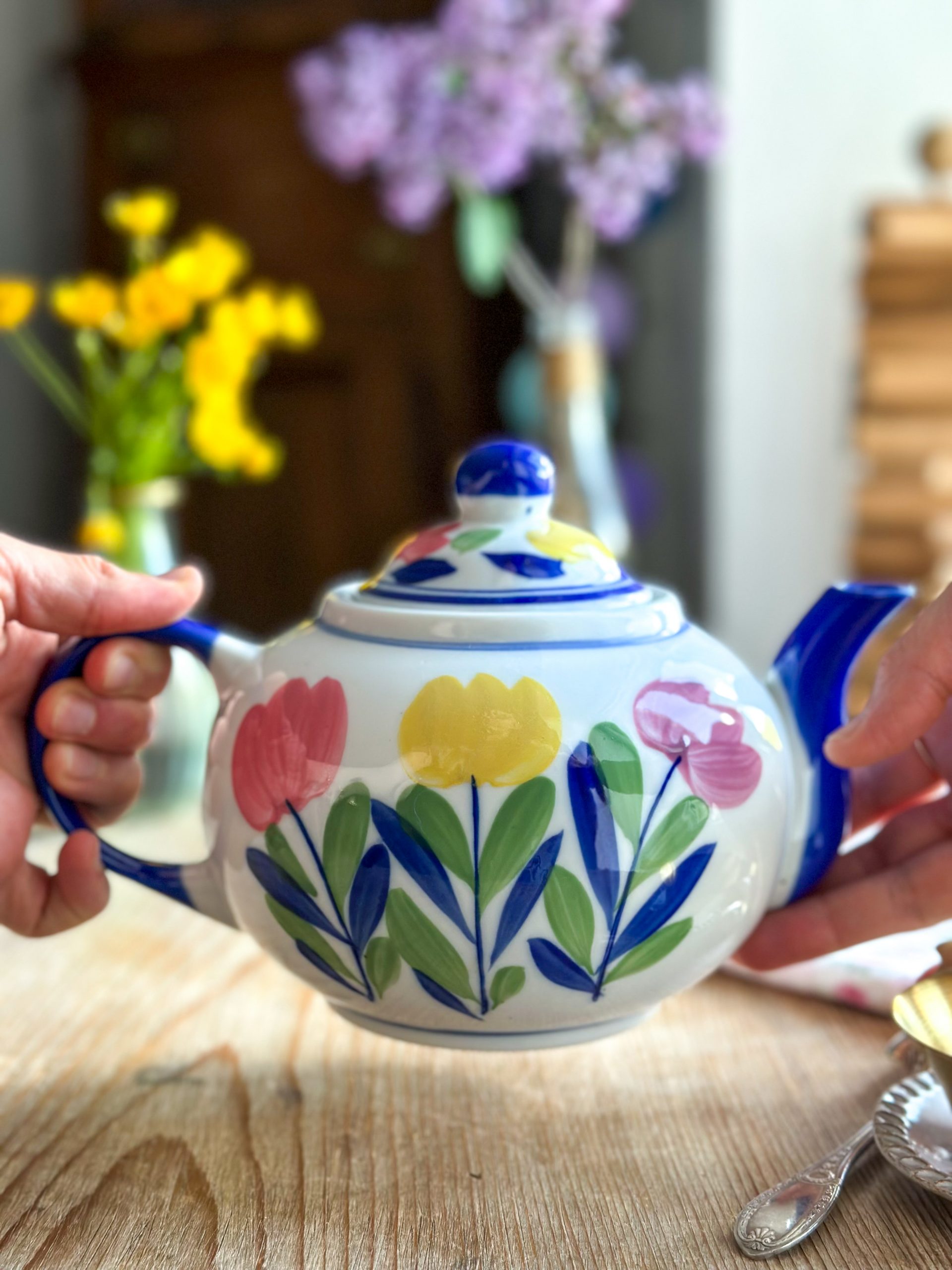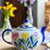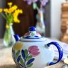 Superbe théière fleurie ! On adore ses motifs de tulipes colorées, peintes à la main tout autour, et le joli bleu de sa anse. Cette grande théière ravira les amoureux de fleurs pour des tea times tout en douceur.