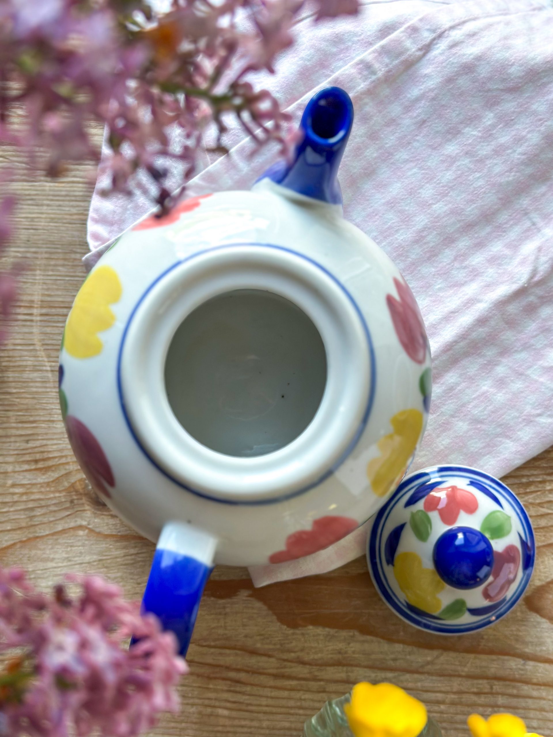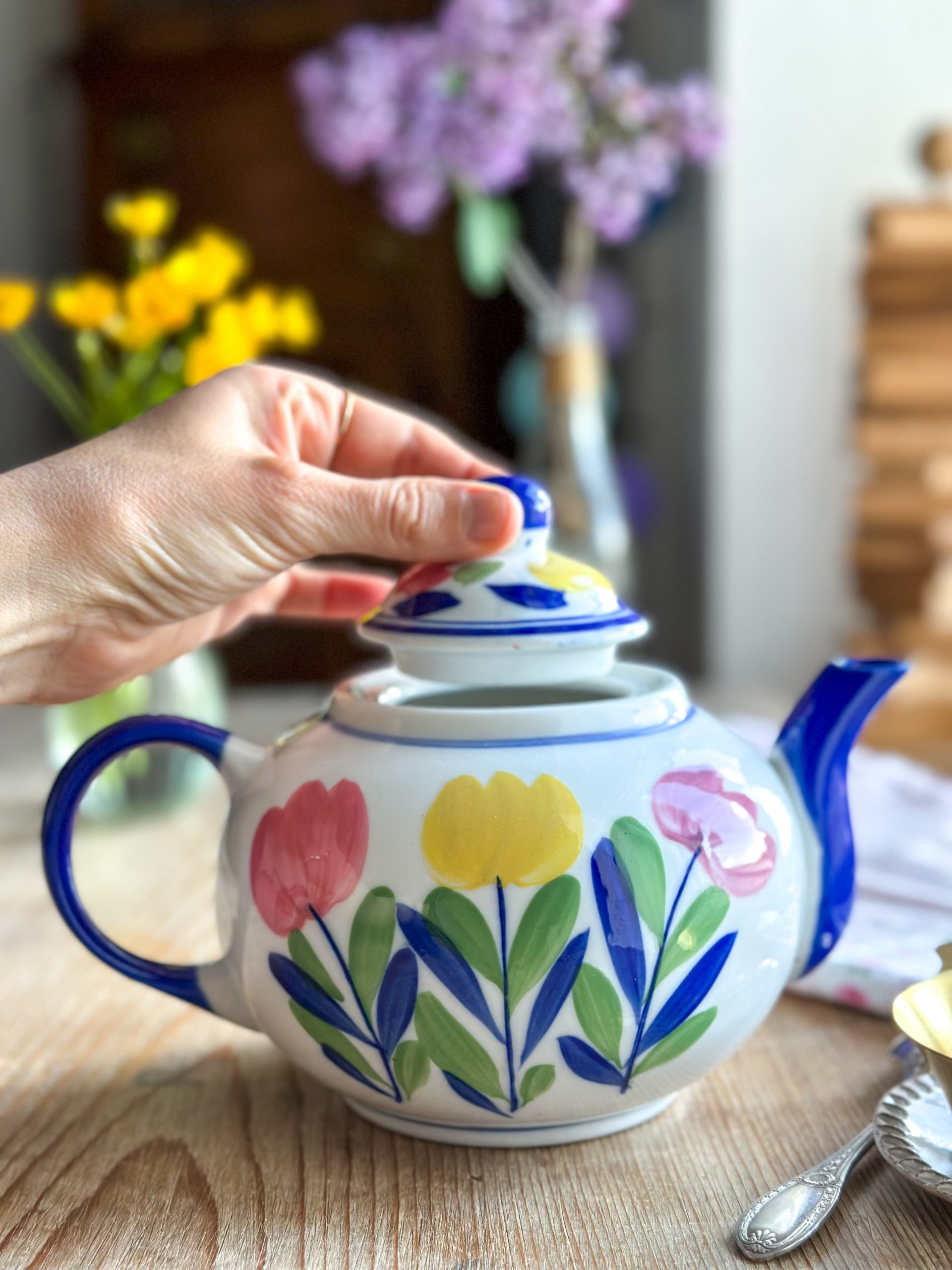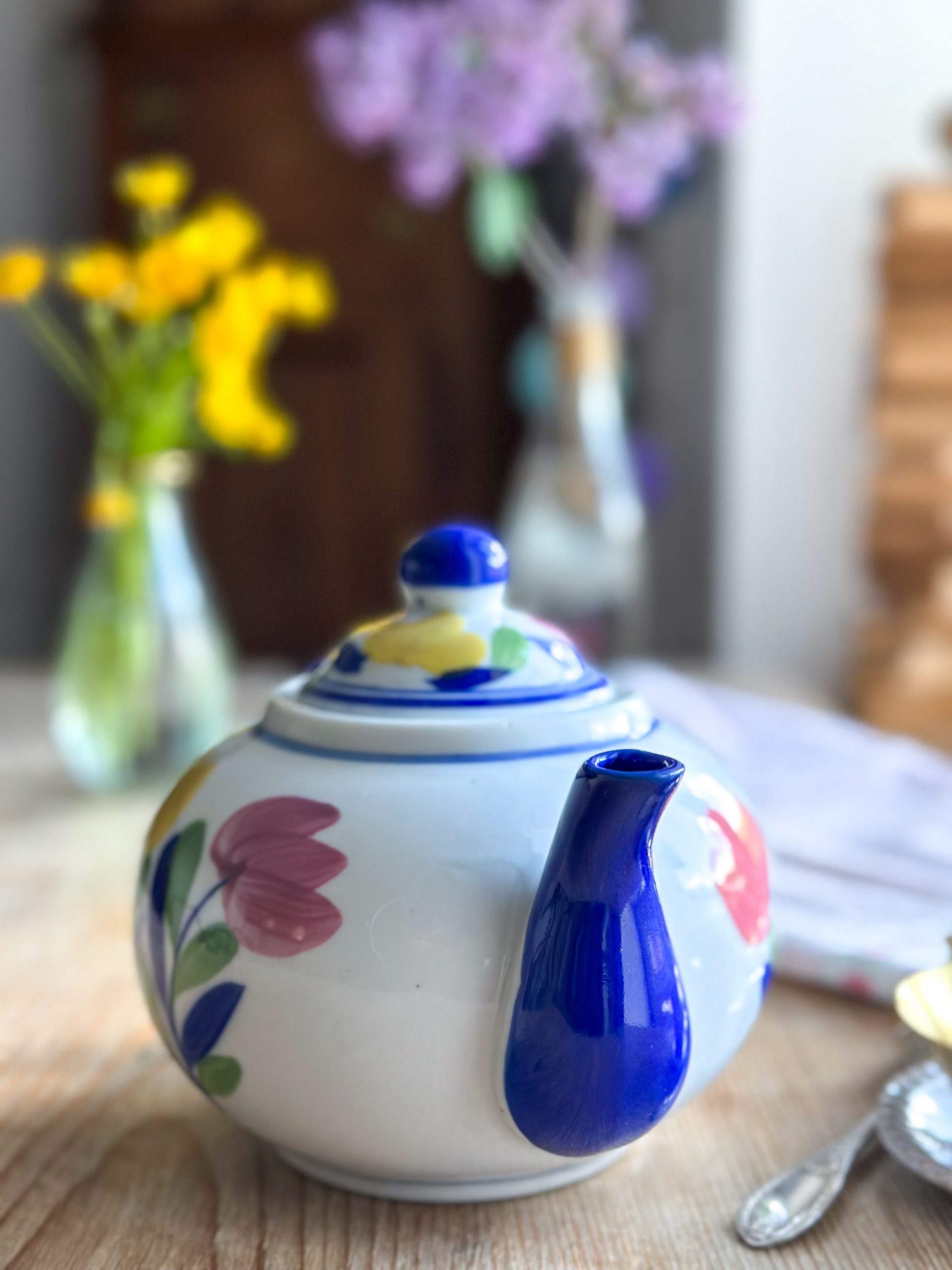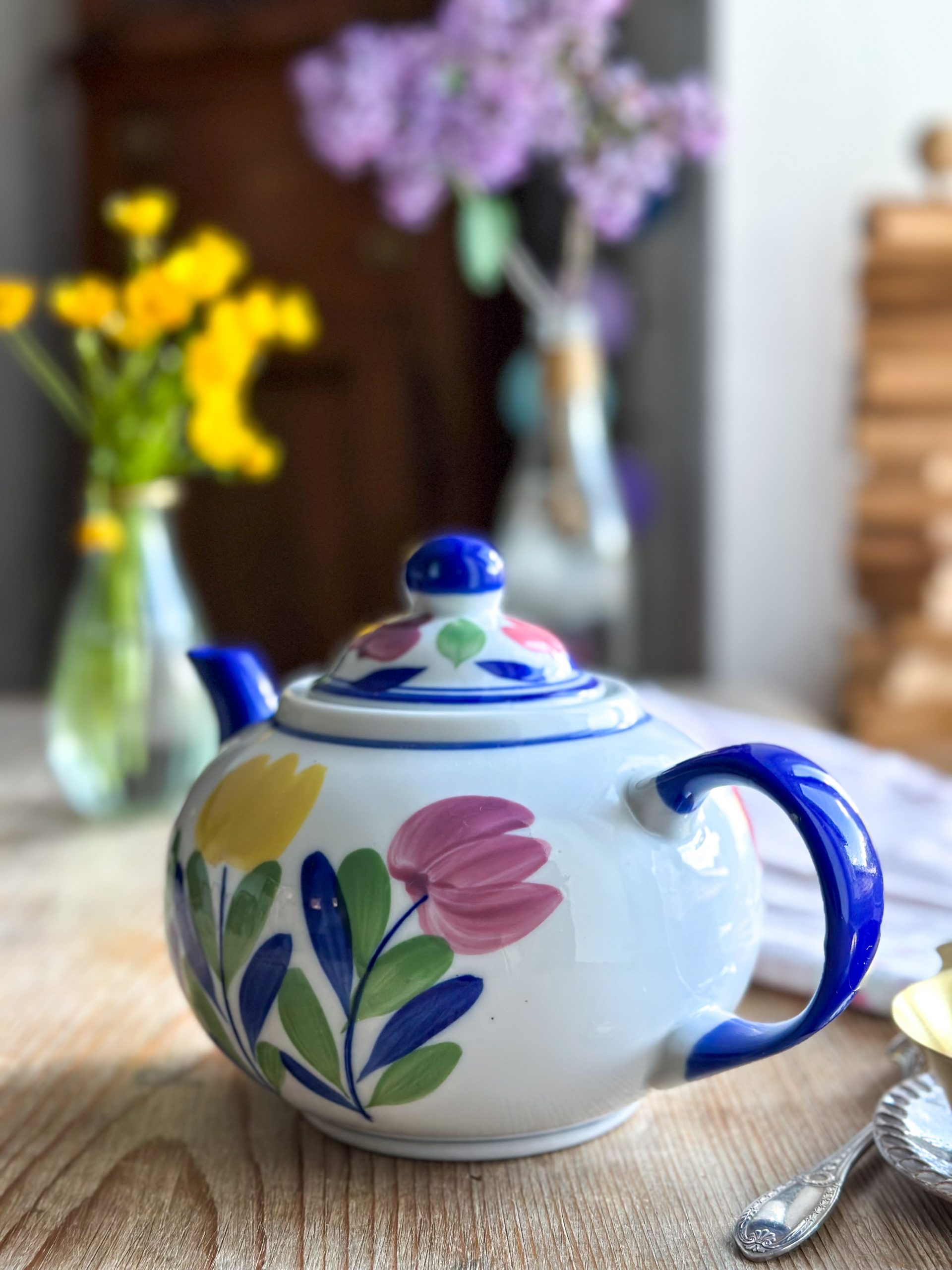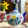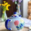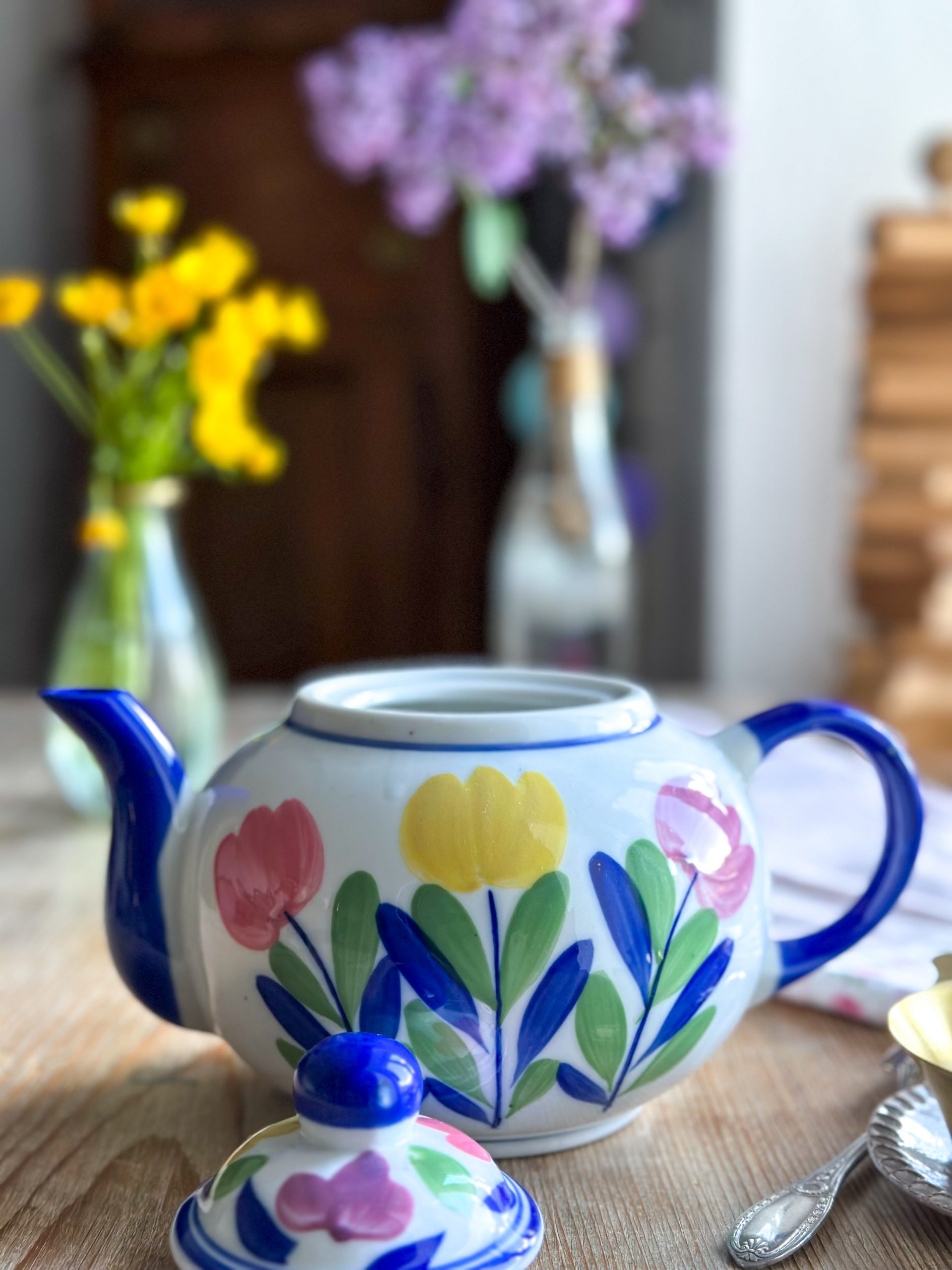 Superbe théière fleurie ! On adore ses motifs de tulipes colorées, peintes à la main tout autour, et le joli bleu de sa anse. Cette grande théière ravira les amoureux de fleurs pour des tea times tout en douceur.