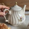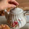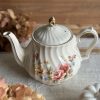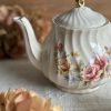 Une magnifique théière vintage ! Cette théière en porcelaine anglaise Sadler a un très joli décor fleuri de chaque côté. Elle a beaucoup d’élégance avec sa porcelaine torse et ses dorures en très bel état.