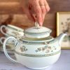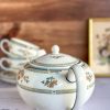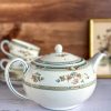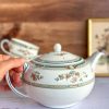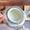 Magnifique théière en porcelaine Wedgwood ! Cette théière anglaise vintage fait partie de la collection Hampshire. Ses jolis décors mêlent fleurs et frises géométriques, réhaussés par des liserés bleus. En porcelaine fine anglaise Bone China, porcelaine très noble et d’une blancheur exceptionnelle, cette théière fera un superbe effet sur votre table pour de beaux moments thé.