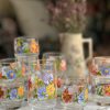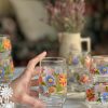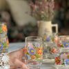 Un très beau verre à sirop Arcoroc vintage des années 70. On adore ses dessins de grosses fleurs colorées !