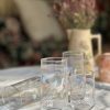 Un joli verre à sirop vintage des années 80 aux motifs très poétiques. On aime beaucoup ses jolis dessins aux tons doux, mêlant des oies et des cœurs bleus et roses.