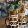 Pépite des années 70 ! On adore sa jolie couleur de verre ambré. Ce verre à jus entouré d’osier est un très bel objet déco pour votre cuisine.